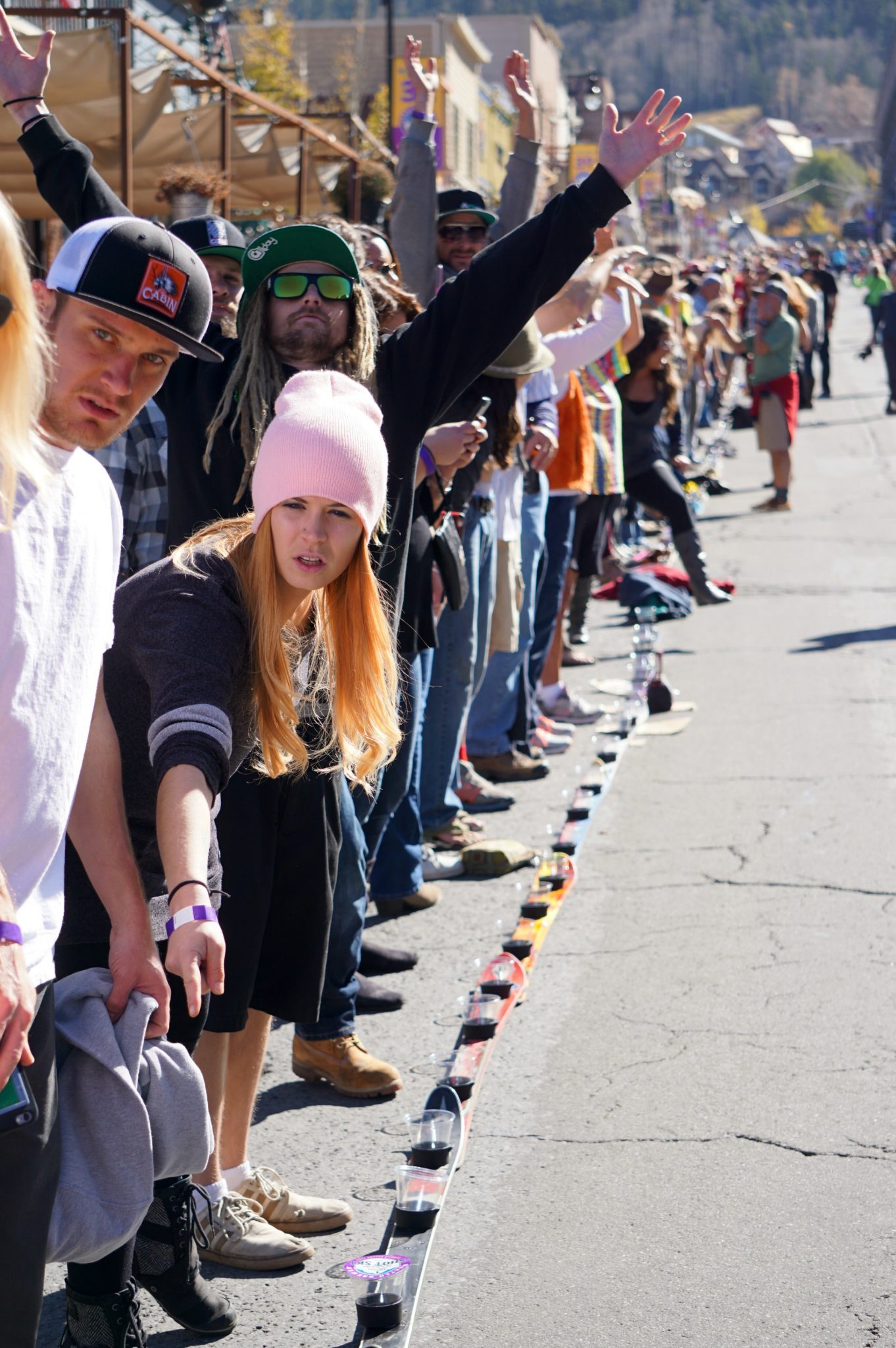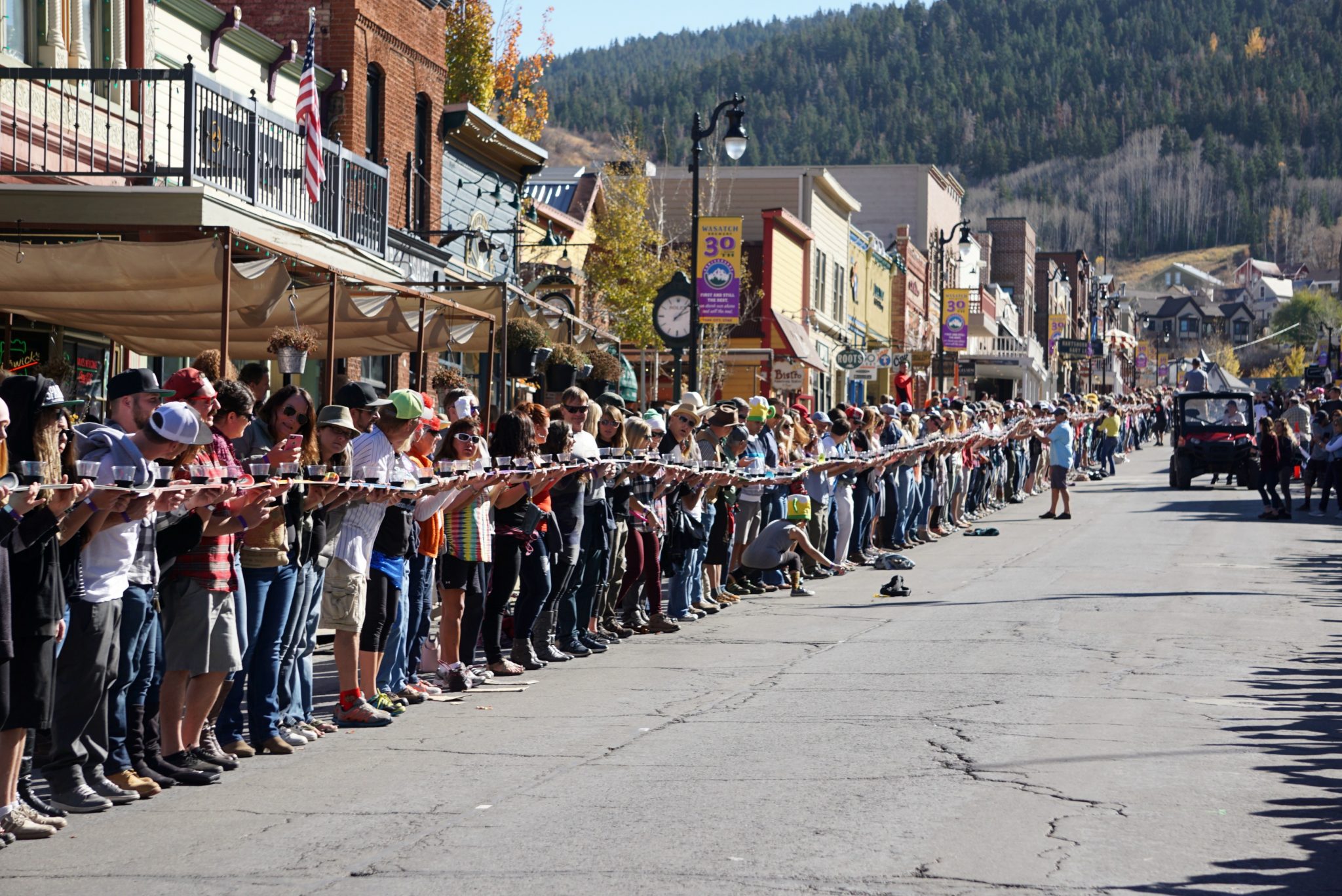 Historic Main Street in Old Town was blocked off to traffic as locals lined up to make history. Some dressed up for the occasion, others preferred to drink on rooftops and watch the proceedings below. All were happy to make their mark in the record books on a blue sky day.