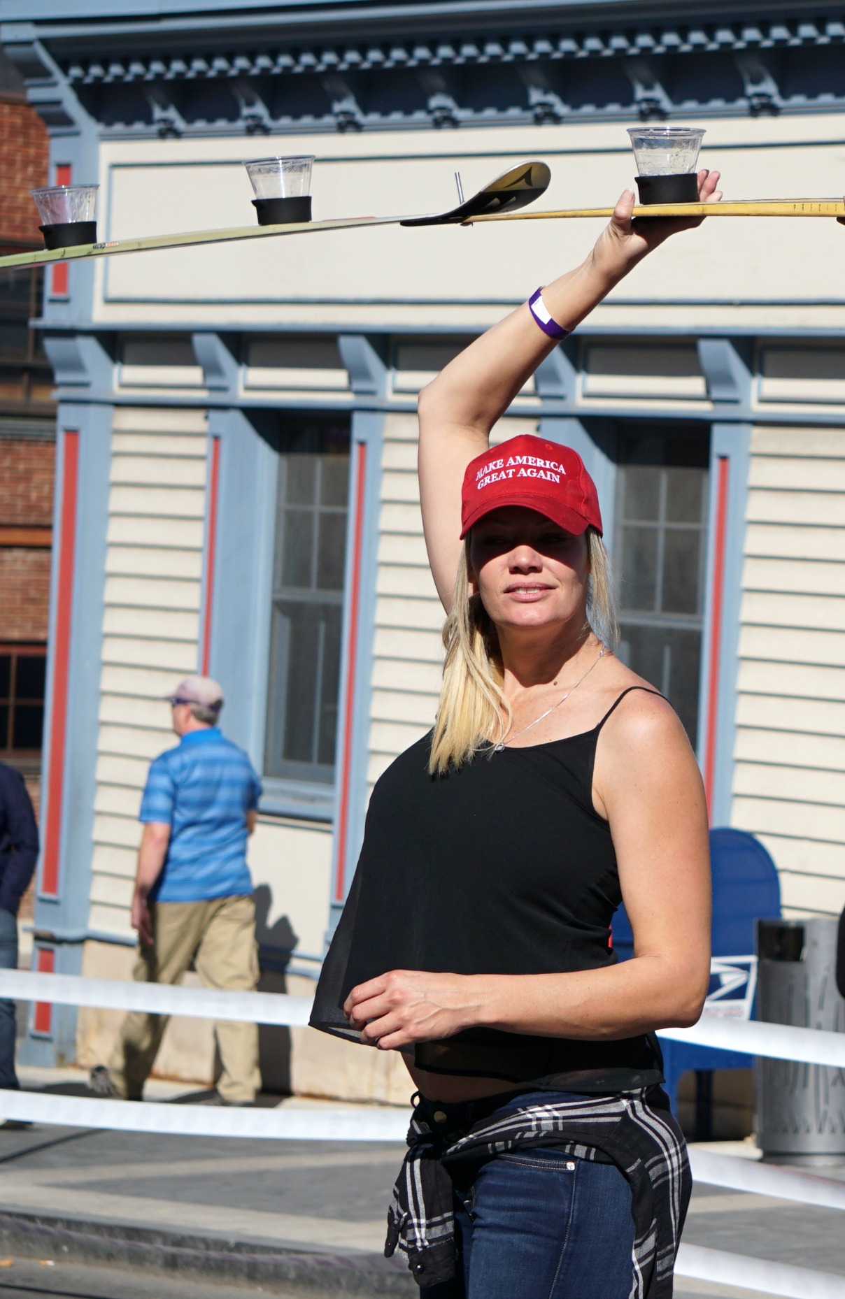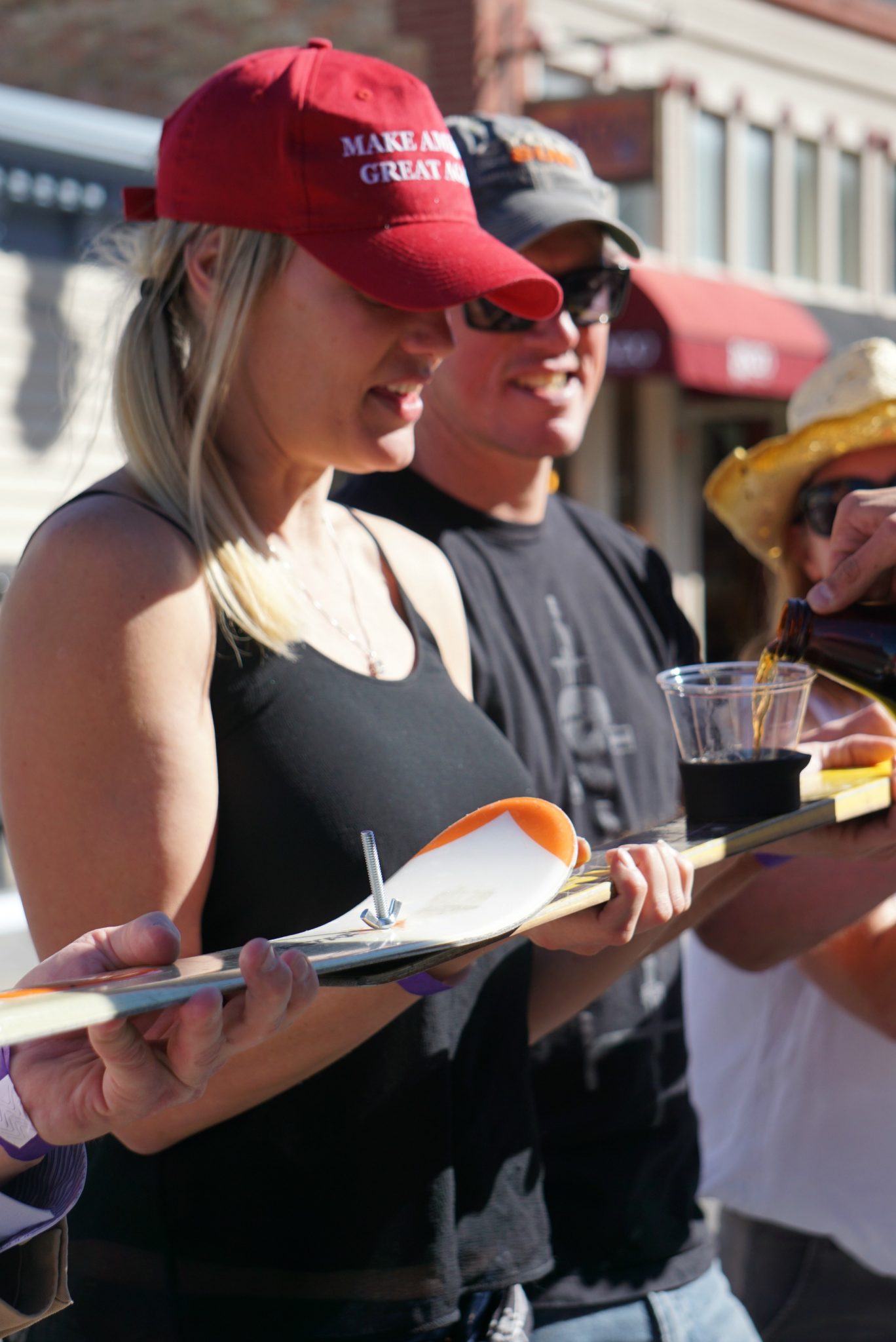 One shot skier even decided to make her politics known with a Make America Great Again cap, lucky for her (or the other shot skiers) the police were in attendance.