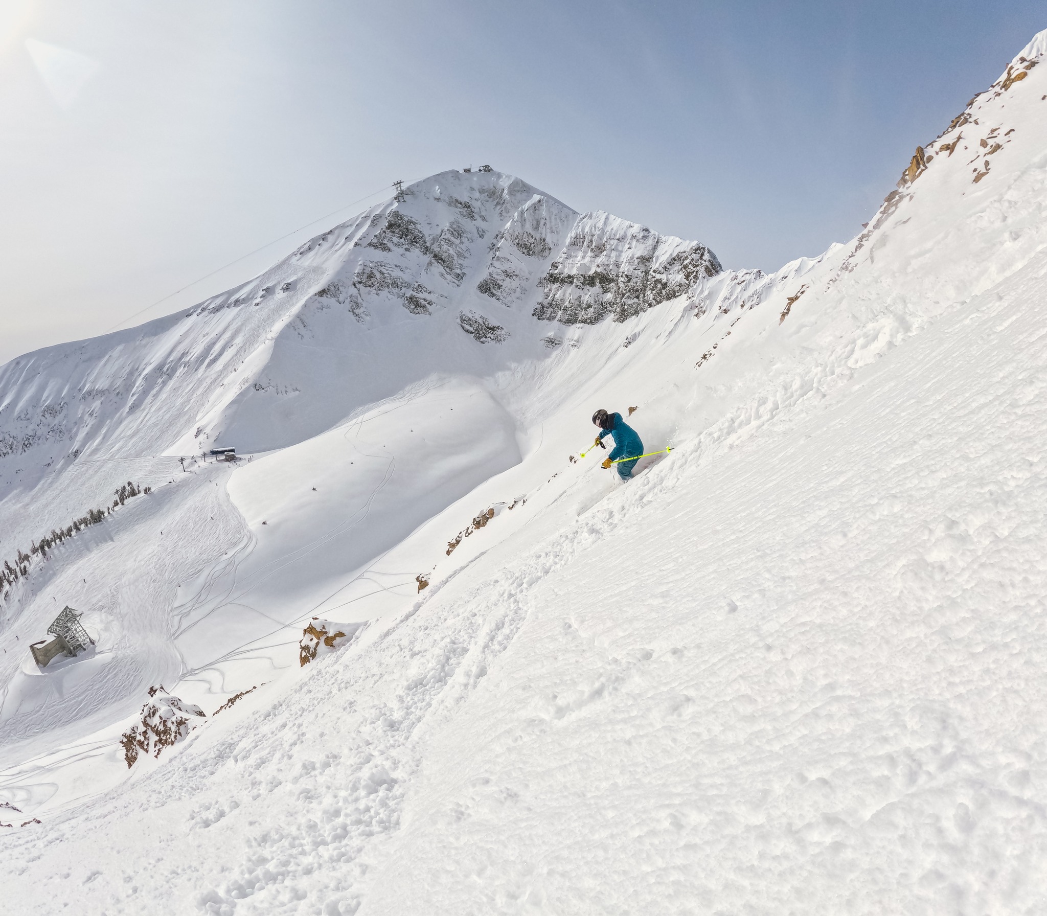 I couldn’t ski powder or big lines or anything really above a groomed black while at Big Sky, due to a compromised knee at the time. But this meant I could “take in” the resort as the average skiing or snowboarding family would. I’ve also spent enough decades in my role to be able to witness terrain and judge how good it would or wouldn’t be, even when I’m not skiing it. Hello, Lone Mountain.