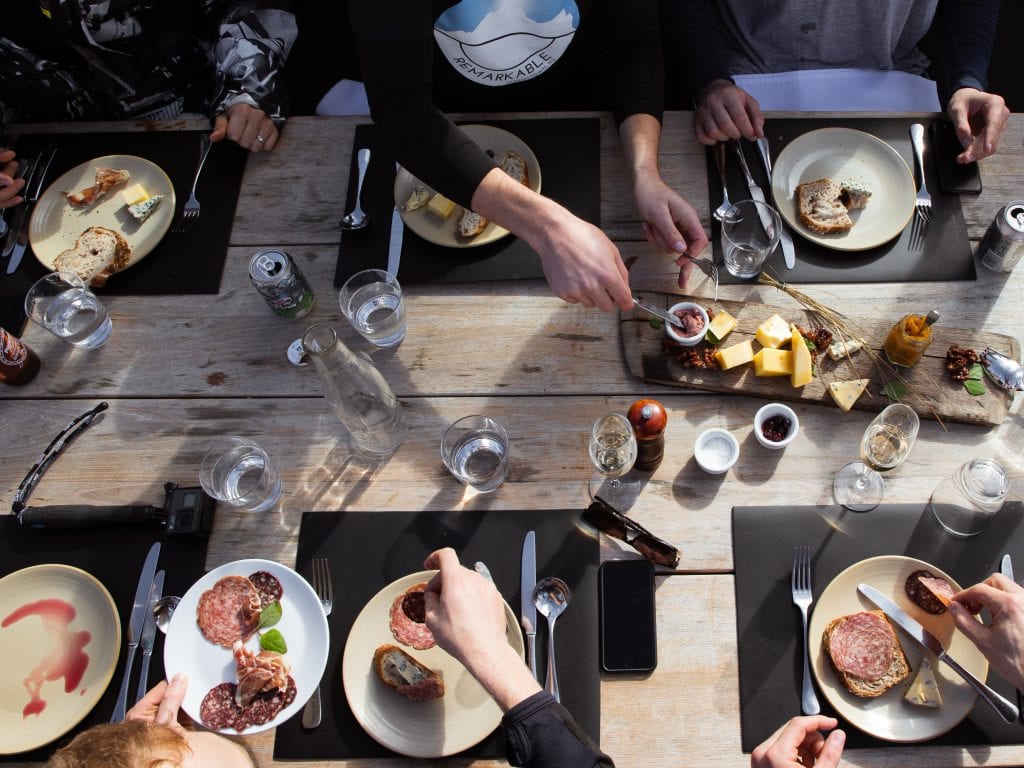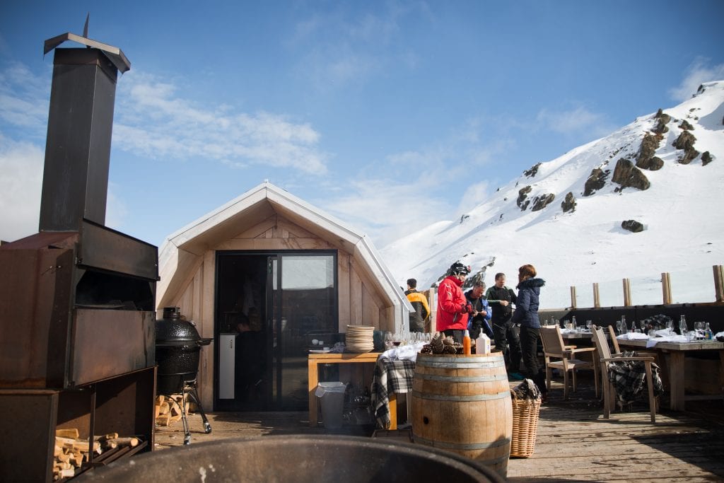 When your legs get tired, wait out a run in the cat or, when lunch is served in the lower hut on a glorious weather days, you can simply sit on the outside deck by the fire with a glass of wine in hand and cheer everyone on.
